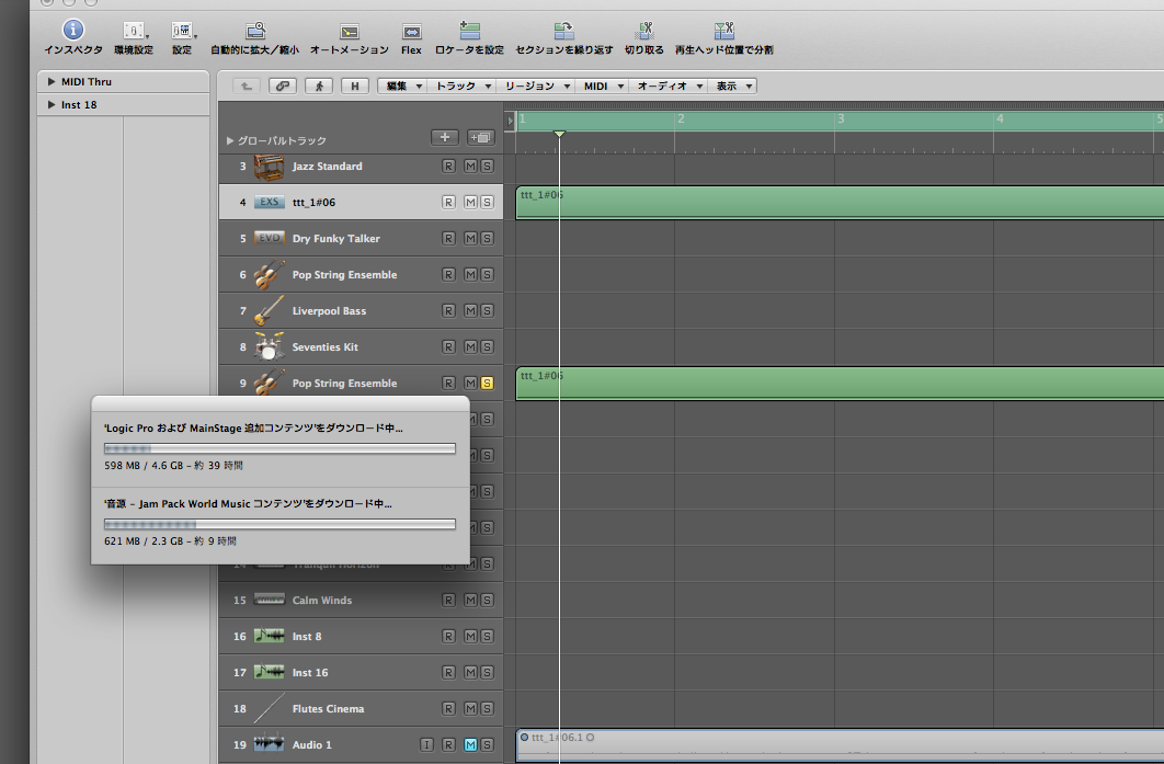 12月11日、早速App StoreからLogic Pro 9 のダウンロード購入をポチしました。これまでCubase中心でしたが、17,000円と破格の値段は魅力です。で、苦労してますダウンロード。ここはジャカルタ。。覚悟は出来ていましたがもう1週間=168時間経過していますが、まだあと6.9GBが継続中です。この間、大きなファイルのダウンロードに3回失敗。日本にいてこうだったら怒りまくるところですが、ここはジャカルタ。冷静で居られます。追加コンテンツはなくても動かせますので、ちょびちょび触っています。iMacとの相性は、Cubaseより良さそうです。MIDIの反応が速い。しばらくLogic Proで楽しんで、後で、Cubaseをどうするか考えよう。