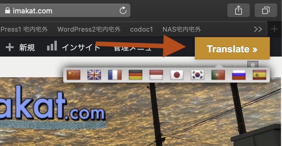 これにより以下のように、MacおよびiPhoneのブラウザの最上行にて、Google自動翻訳言語の選択を復活させました。
