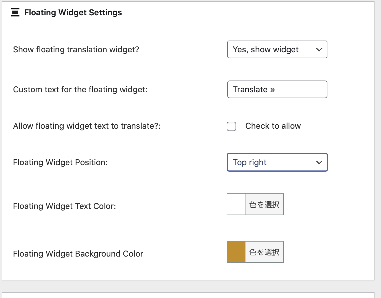 *プラグインの Google Language Translator を有効化。