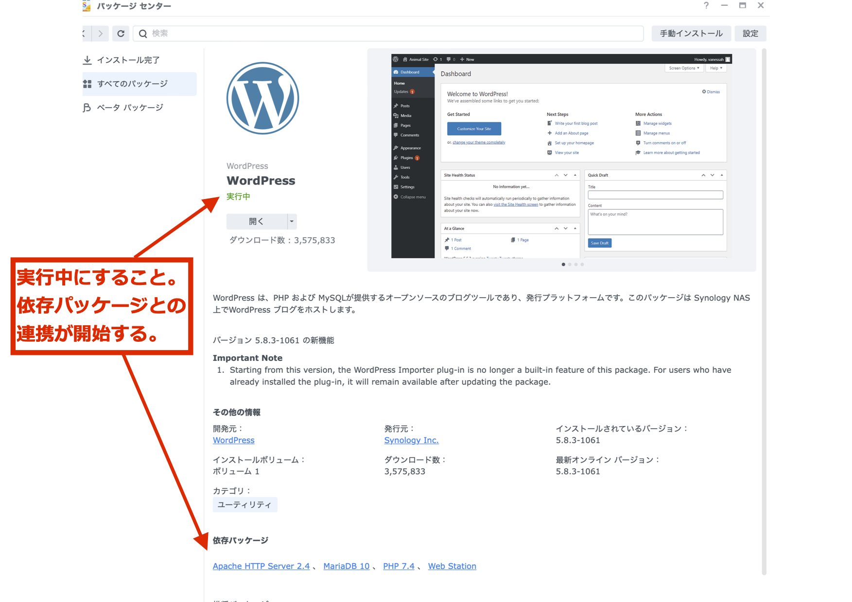 その中で、WordPress、Web Stationなど、Webサーバーに必要なものもエラーになります。