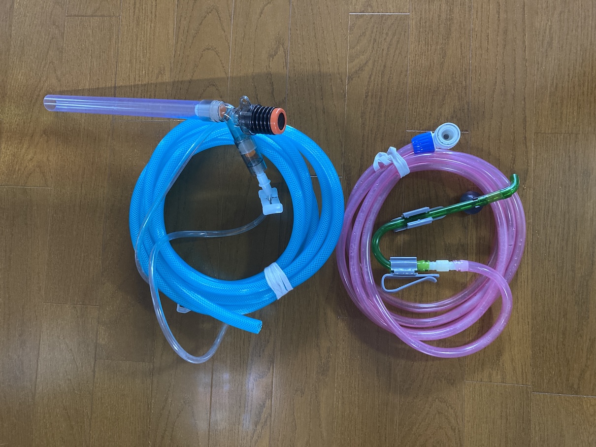 排水用の器具ですが、上の写真のプロホースをずっと、2016年から2024年まで約8年間使ってきました。使いにくさも気になっており、ちょっと気分転換のために、今回2024年11月ですが、GEX マスタークリアMに変えてみました。排水時間が半分くらいになり、持ちやすさもあり、使い始めは、いい感じです。しばらく続けてみます。