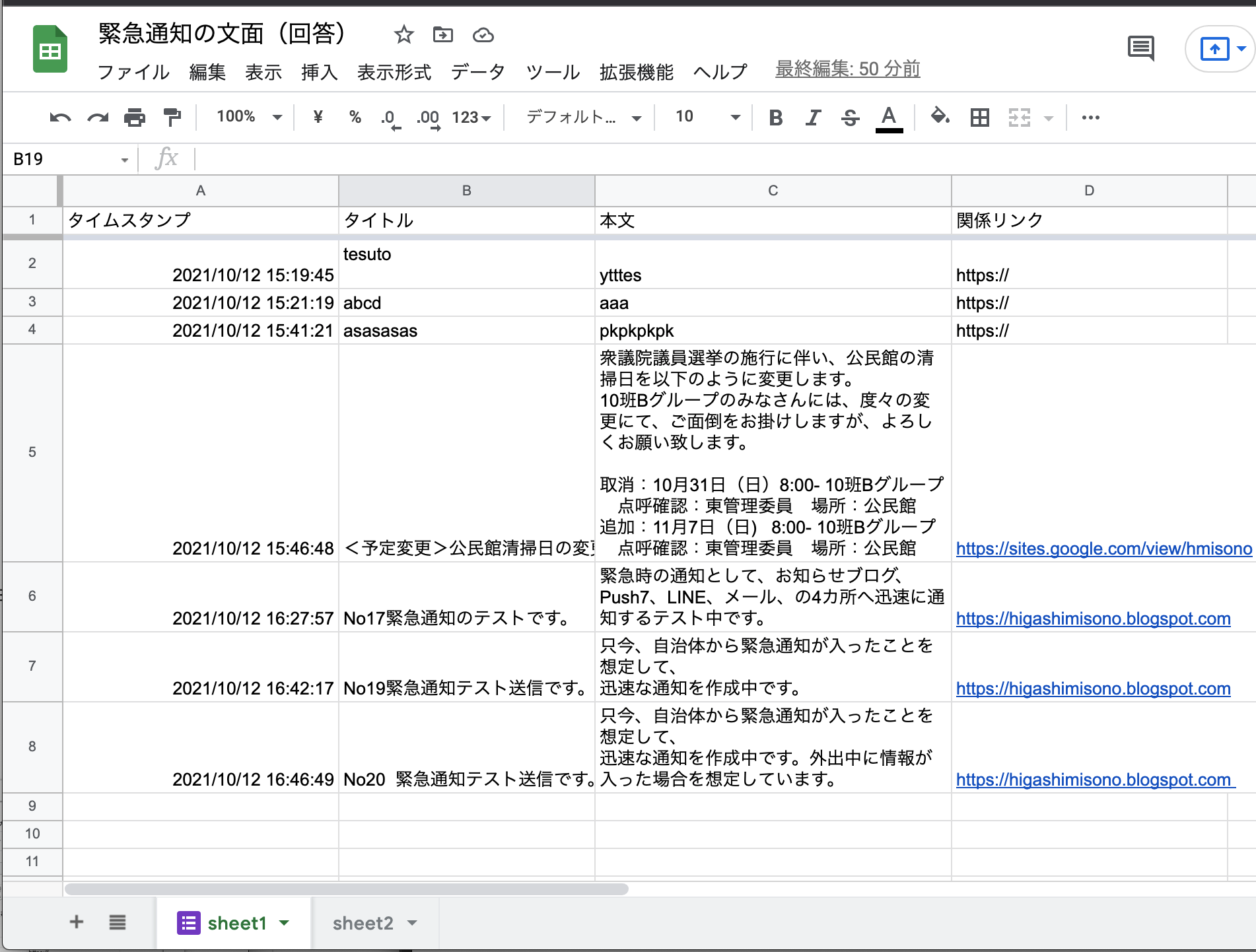Googleフォームは、取得データをGoogleSSへ格納するという画期的な仕組みにより瞬時にグラフや分析が行われる優れものです。しかし、今回、最も単純な、通知文のタイトルと中身を記入する、それをそのまま発信に結びつける。ただそれだけ。なんでこんな簡単なことができないのか。と悩んでしまった。。