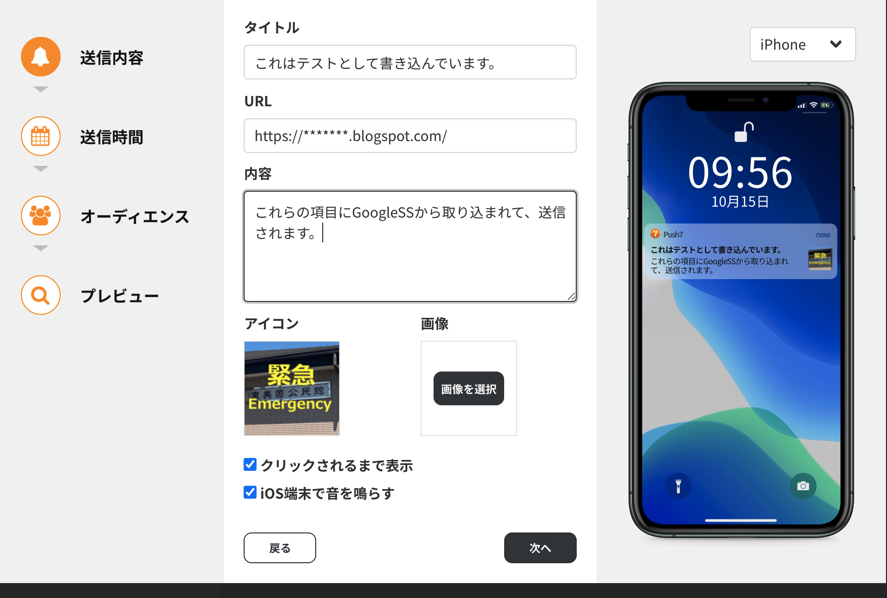 このSTEP4における配信作業の流れでは、Push7のアプリは何も触りません。