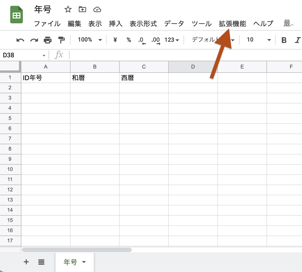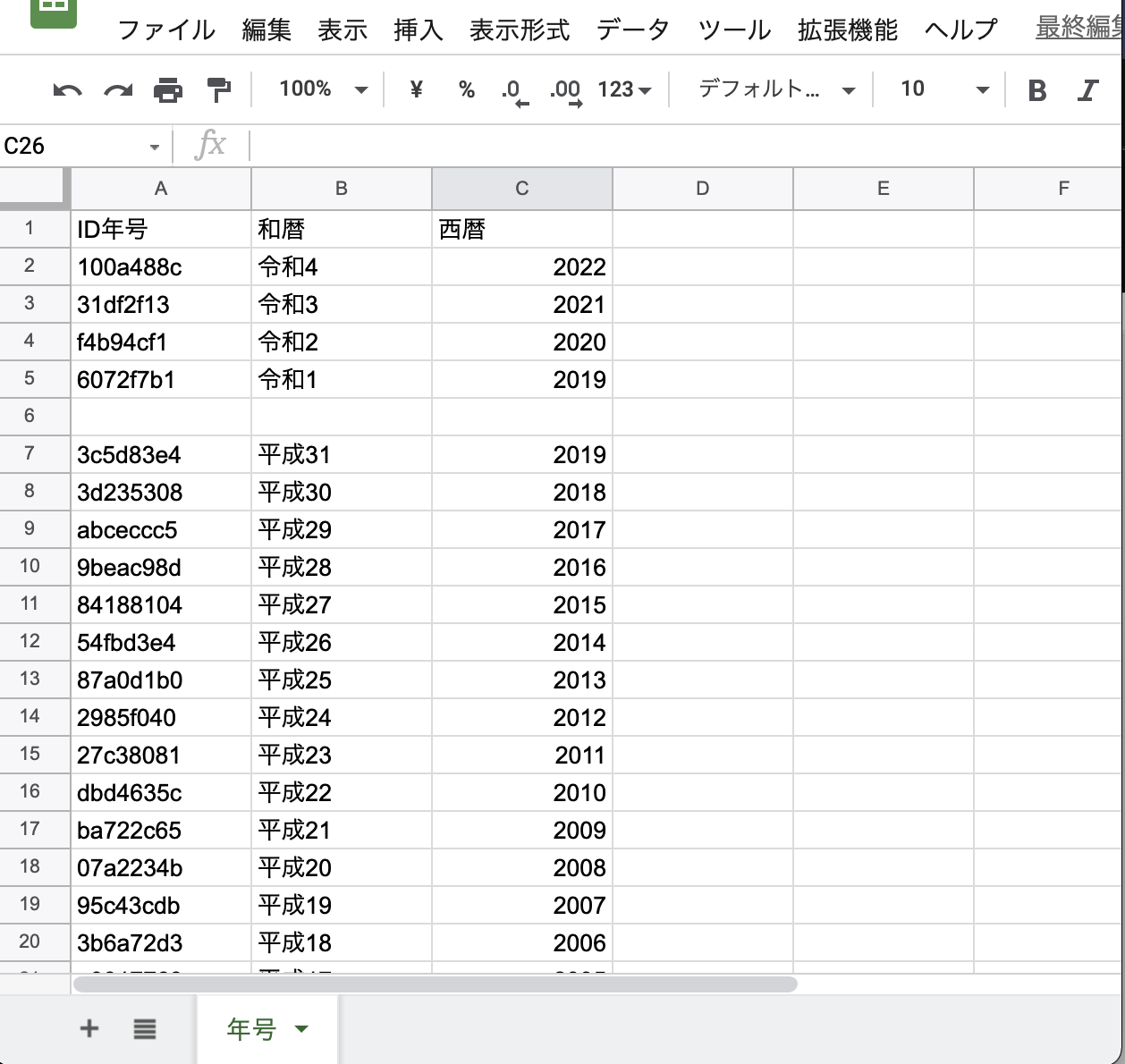 <1> Googleスプレッドシートで年号ファイルを作る。