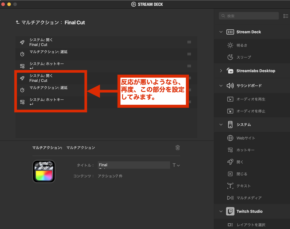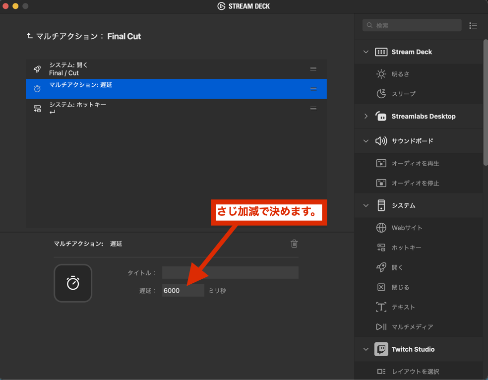 1 STREAM DECKの「遅延」アクションは素晴らしい。