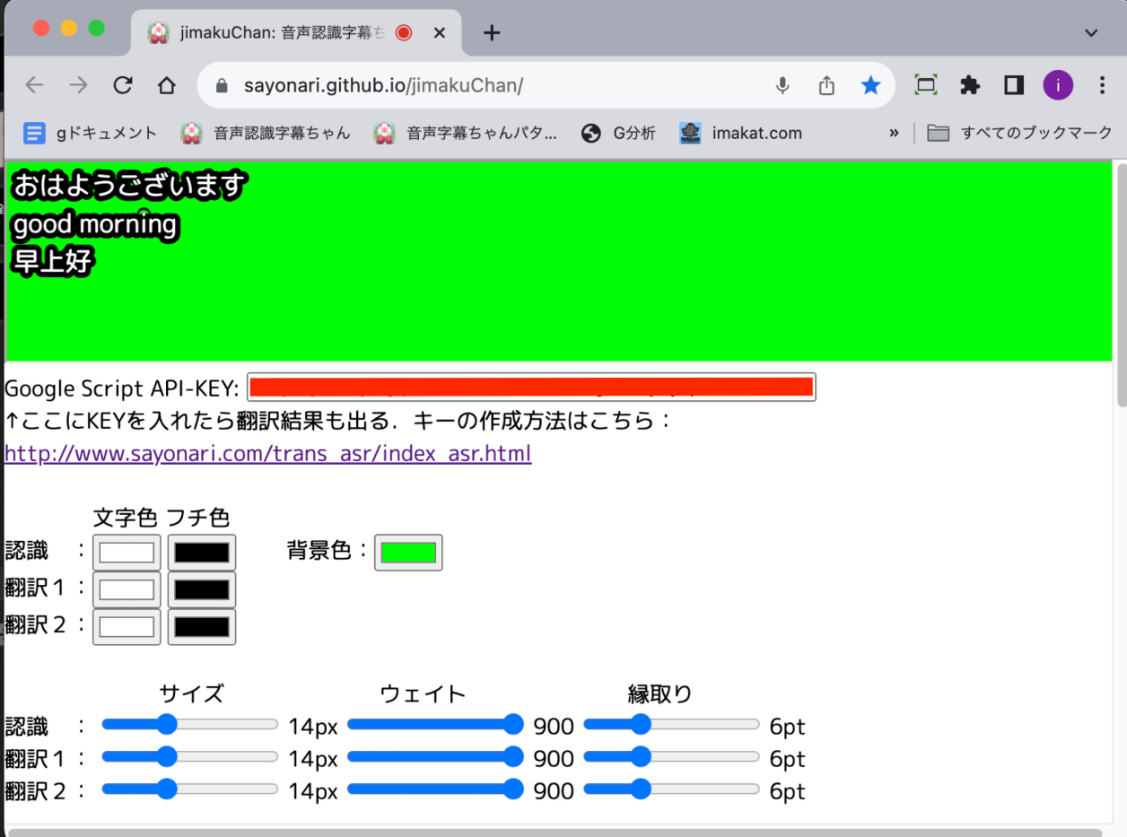 同時翻訳を行う場合は、Google Script API-KEYが必要です。その取得については、