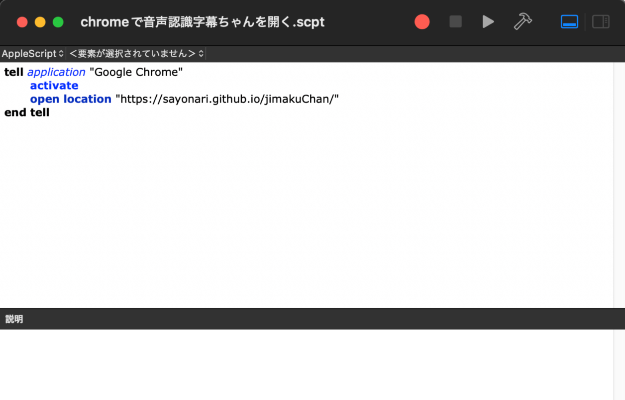 3 「音声認識字幕ちゃん」を起動させるためのAppleスクリプトを作る。