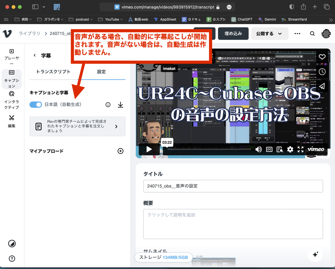 自動字幕起こしにvimeoを使った例_OBS~音声の設定 9分(動画🎥)