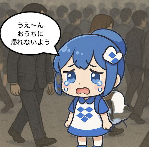 (※正しくいうと、Dropboxの場合、おうちはDropboxのクラウドストレージ、出先がローカルフォルダ、という関係になります。ですから、エラーが続くからといって、Dropboxのクラウド側を空っぽにして、ローカルのファイルを送り込むようなことをするのは大間違いです。Dropboxリンクは全て新しいものに置き換わってしまいます。正しくは、いつも、ローカル側を空にして、クラウドストレージ側からダウンロードします。)