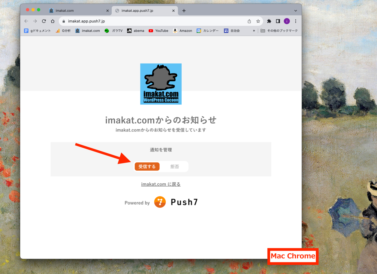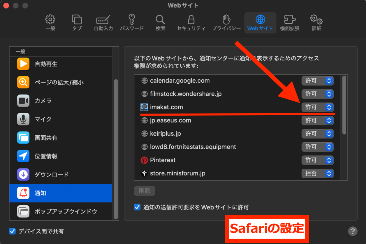 MacでのSafariは、Push7での通知は許可されていません。