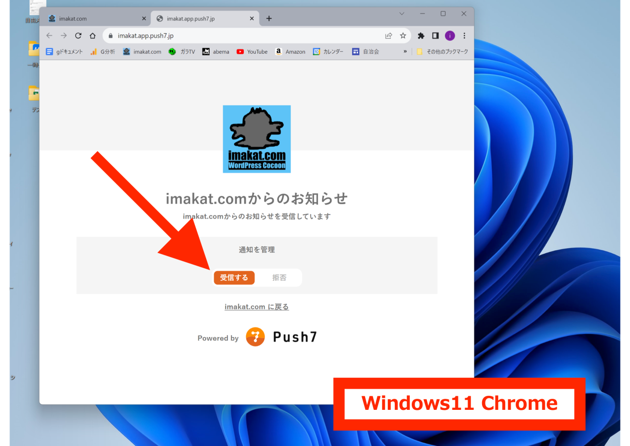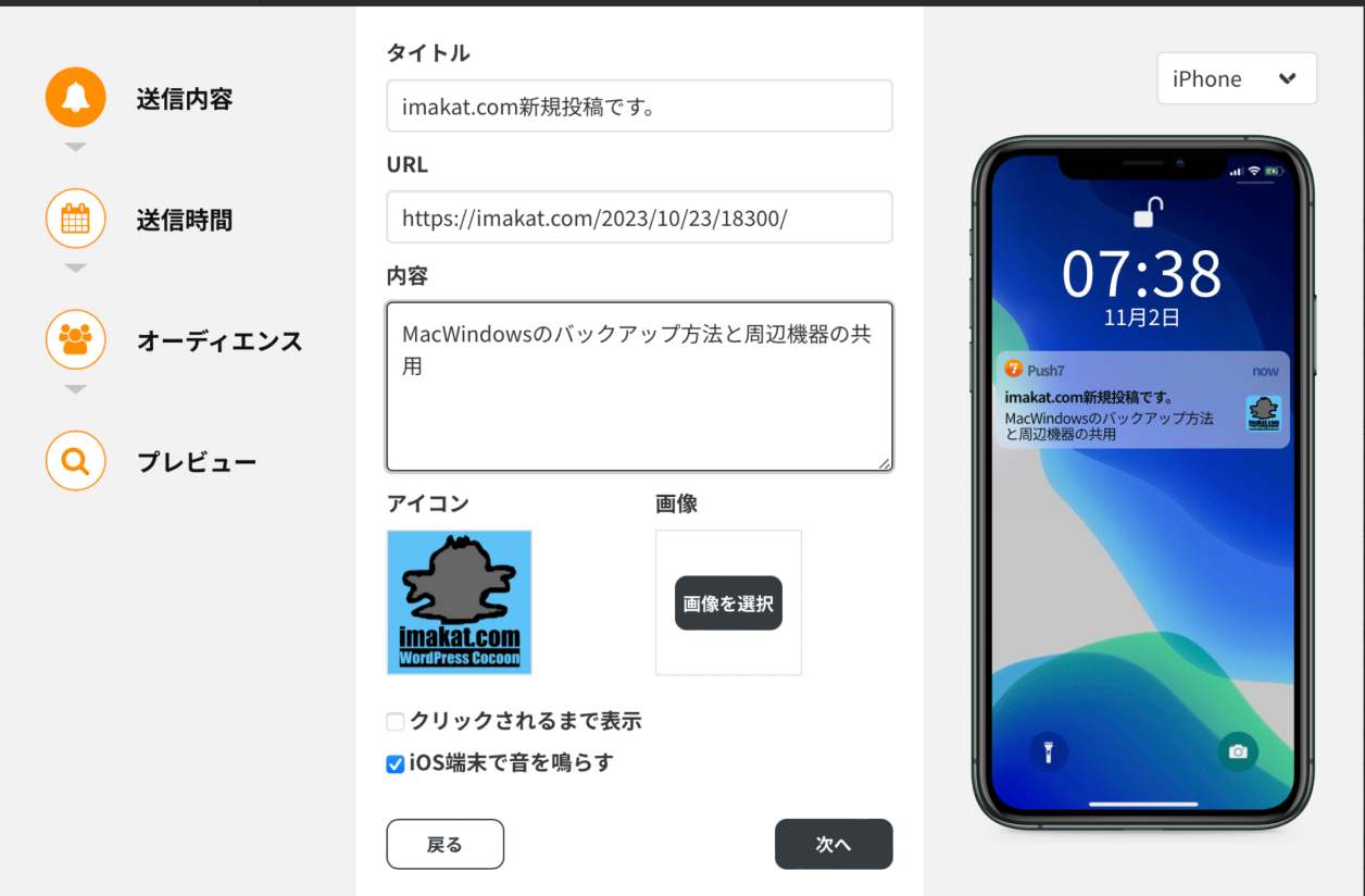 iPhone,iPadについては、Push7のアプリ(無料)をApp Storeからダウンロードして使います。おそらく、近い将来、MacのSafariのように、設定→通知設定、この中で、URLを許可する仕組みも用意されることと思います。