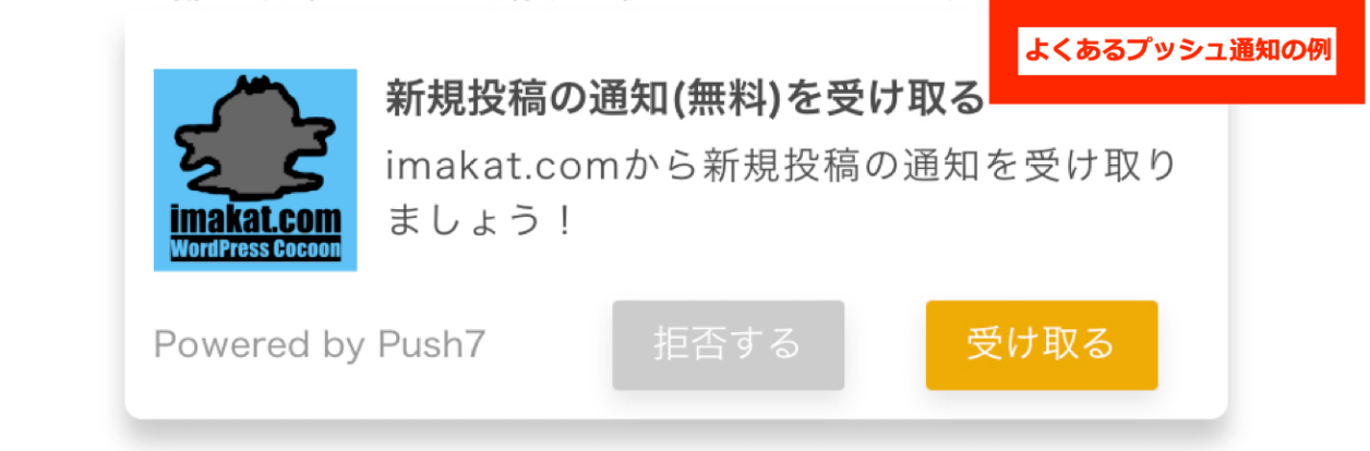 最もよく目にする例は、以下のようなボックスが、ブログやホームページの上下から顔を出すことです。大きいものだと記事を隠すように被さってきます。その状態で、新規の投稿の通知を受け取るか、拒否するか、それを求められるわけですので、あまり気分はよくありません。大抵は「拒否する」を選べば、次からは顔を出さないようになりますが。中には、どちらが拒否なのか分かりにくいものもあります。