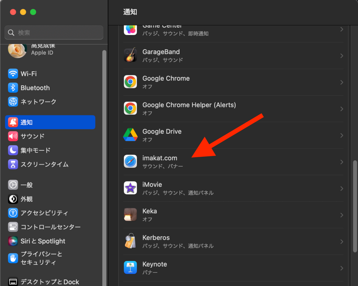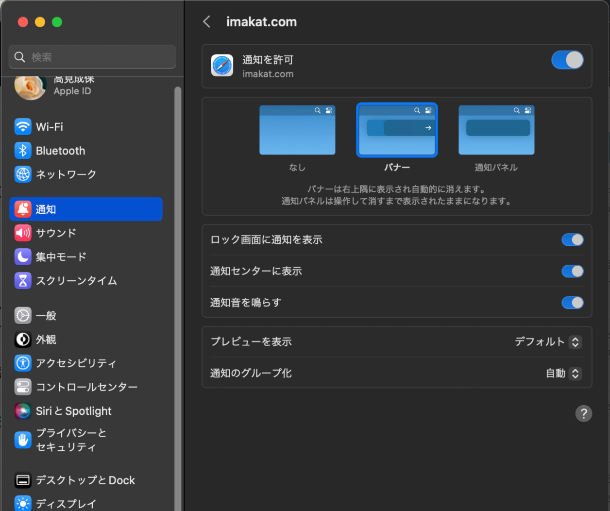 その代わり、MacOS Venturaでは、Safariの「設定」→「Webサイト」→URLを許可。次にシステム設定の「通知」→URLの通知方法を設定します。